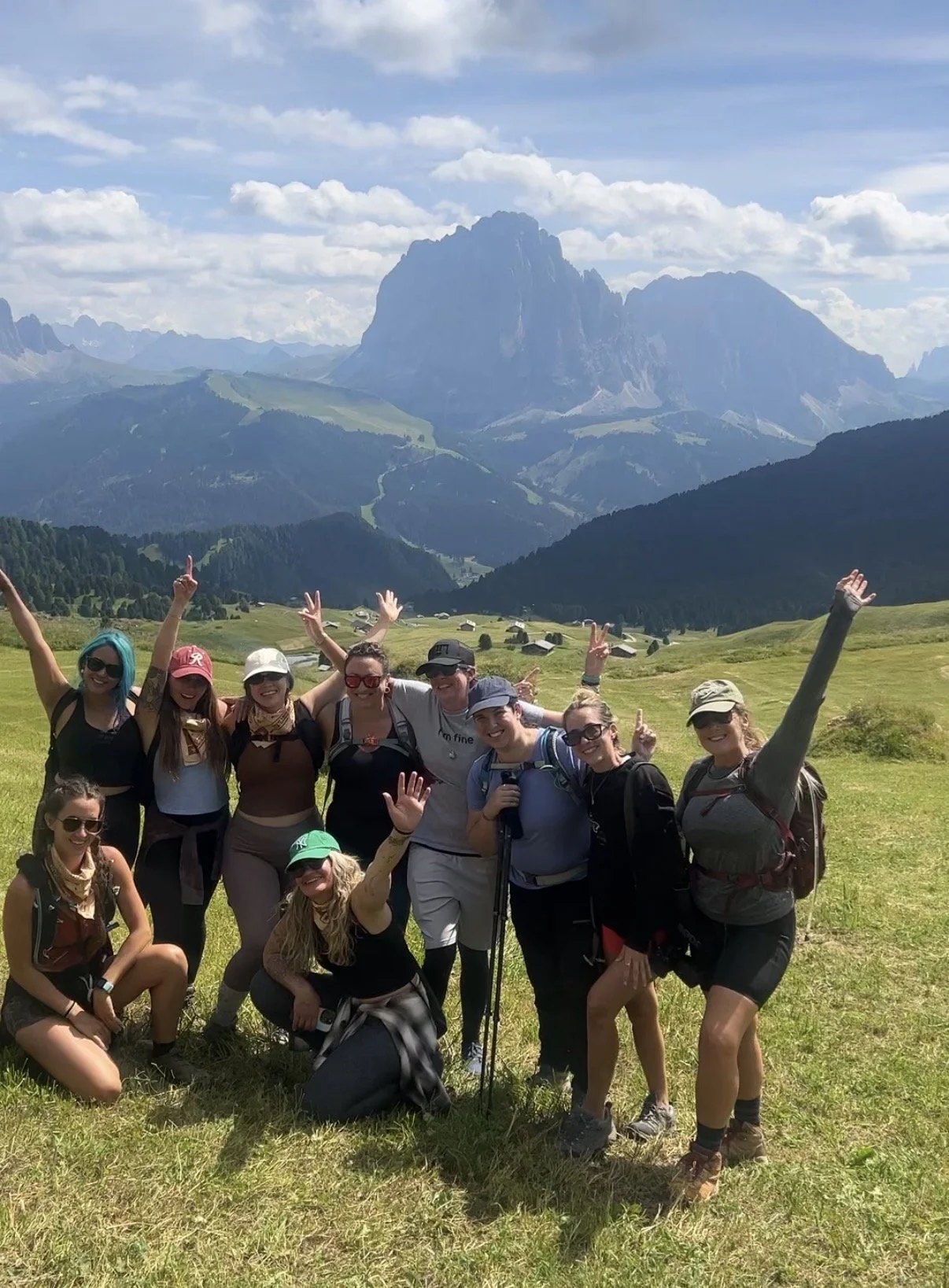 In the Dolomites, we set out to summit Seceda—an infamous, eight-mile hike that asks a lot of you. There were moments when the trail felt endless. When some of us wondered if we should turn back. When others questioned whether they had it in them at all. And every time, someone else stepped in—waiting, encouraging, sharing snacks, reminding each other to breathe. We kept going together. When we finally reached the top, the views were unreal—jagged peaks rolling out forever—but what felt even bigger was the pride we felt in ourselves and in one another. On the way down, we laughed and bonded at a mountaintop refuge, passing around bread, wine, and snacks….buzzing on altitude and connection, high on the simple fact that we did something hard—and did it together.